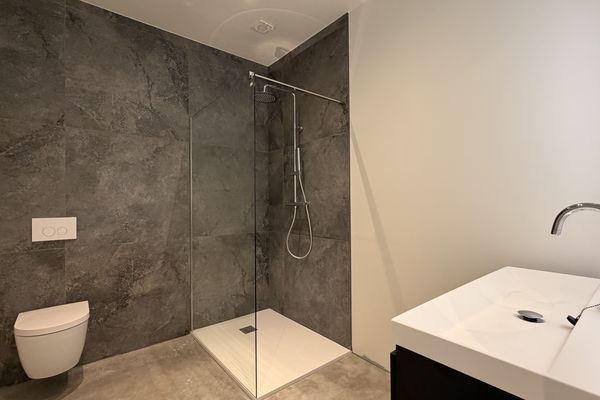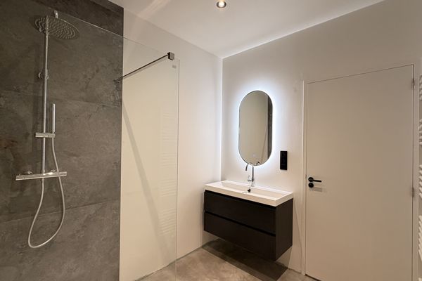 - Badkamer met douche, wastafel en toilet