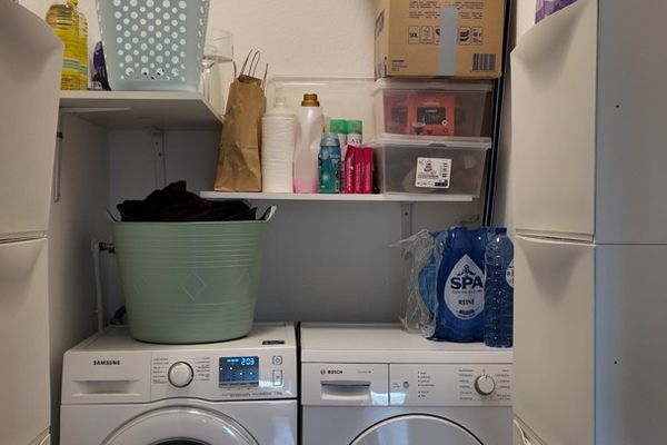 Verder is er een ruime woonkamer met eetkamer in één geheel, voorzien van airconditioning. Dankzij de grote raampartijen geniet het appartement van veel natuurlijke lichtinval. De badkamer is ingericht met een douche en een wasmeubel. Het appartement beschikt over drie slaapkamers, waarvan twee ruime en één kleinere kamer, aan een slaapkamer treffen we een tweede balkonnetje. Daarnaast is er een praktische berging met aansluitingen voor wasmachine en droogkast, evenals een apart gastentoilet.