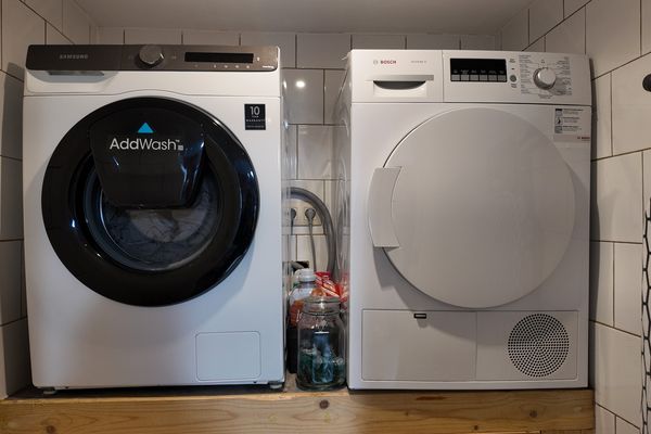 - Een praktisch washok met aansluitingen voor wasmachine en droogkast