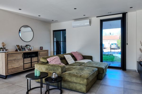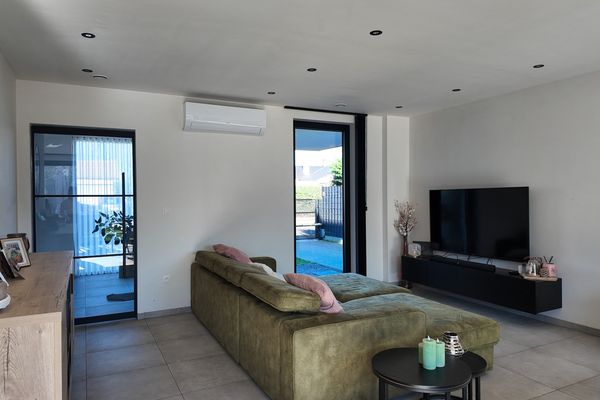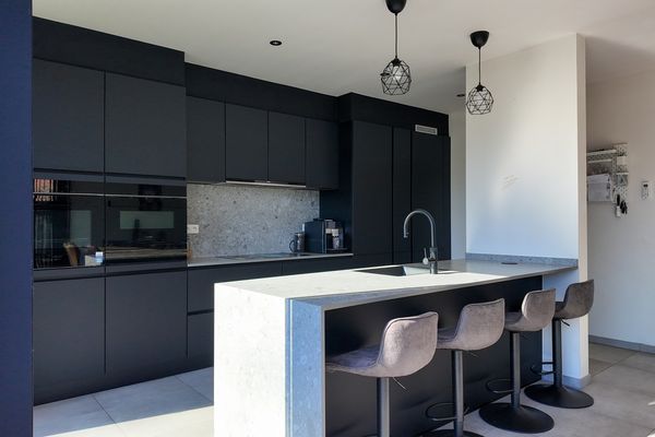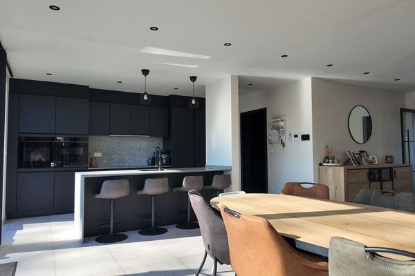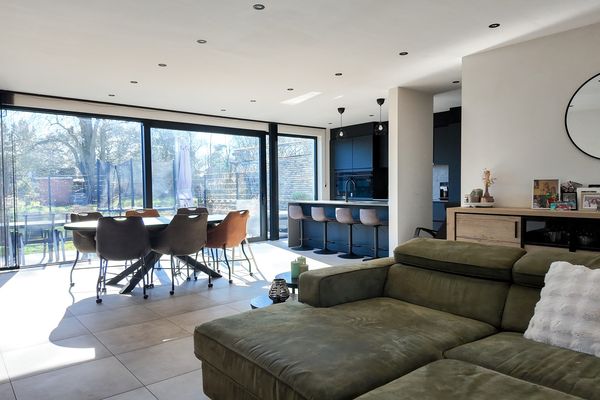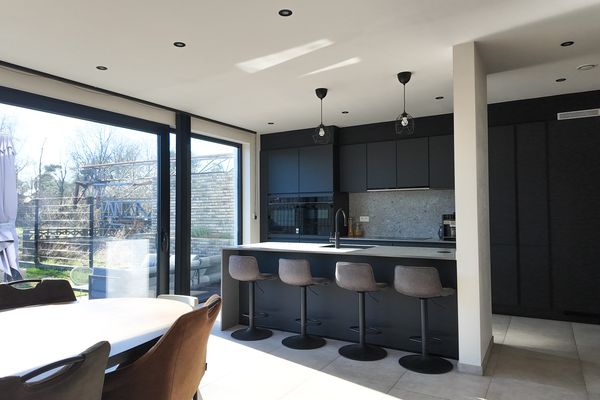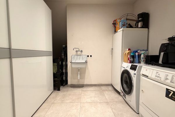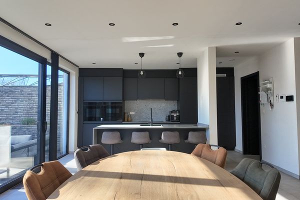 De leefruimte bestaat uit een grote open en lichtrijke ruimte met grote raampartijen die zorgen voor een aangename lichtinval en een mooi zicht op de tuin. De open keuken is modern ingericht en voorzien van alle nodige toestellen. Dankzij de open indeling blijft er een aangenaam contact met de leefruimte, wat het geheel ideaal maakt voor zowel dagelijks wonen als het ontvangen van gasten. Aansluitend aan de keuken bevindt zich een praktische berging met aansluiting voor wasmachine en droogkast, een uitgietbak en de technische installaties van de woning.