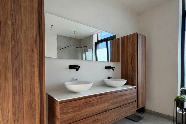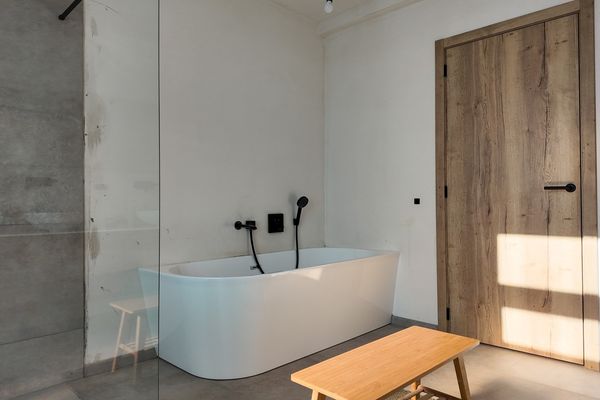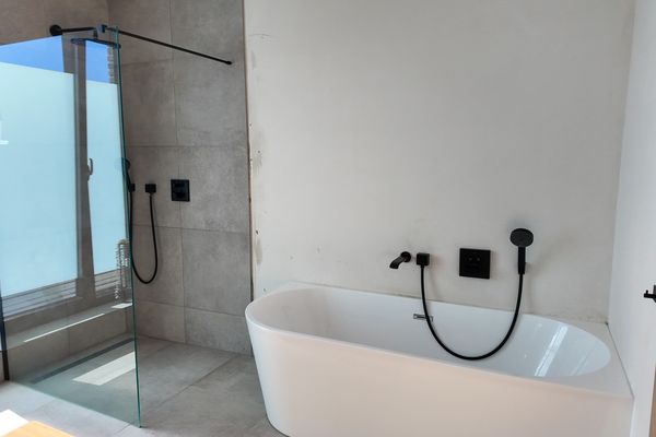 Op de eerste verdieping bevindt zich de ruime badkamer, uitgerust met een dubbel wasmeubel, een inloopdouche en een ligbad. Verder zijn er drie slaapkamers, die perfect kunnen dienen als slaap-, kinder- of bureauruimte.