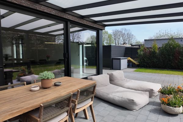 De tuin is volledig omheind en afgesloten met een poort aan de voorzijde, wat extra veiligheid en privacy biedt. Achteraan de woning bevindt zich een gezellige overkapping, ideaal om het hele jaar door van het buitenleven te genieten.